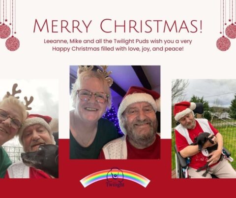 The Twilight Puddings with Mum and Dad, Leeanne and Mike, thank you for visiting our website. Established over twelve years ago, the Twilight Retirement Home for Dogs has seen more than 400 dogs pass through its gates and has inspired many people to welcome an old or disabled dog into their life. Nestled in the verdant countryside of the French Perigord Vert, this family home is an oasis of love and tranquillity where the old, sick, lame and unwanted come to spend their final years, months or days, with all that a dog needs to make him or her as well and as comfortable as possible. It’s about having the best of life to the very moment of crossing the Rainbow Bridge.